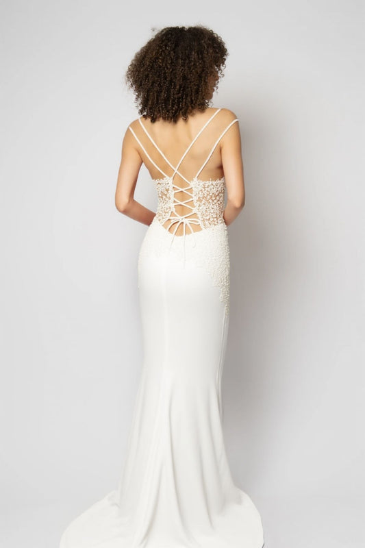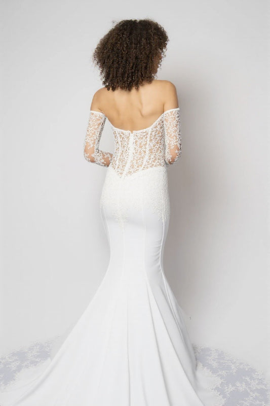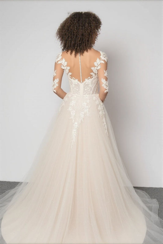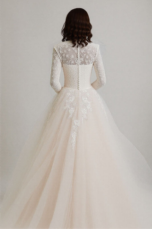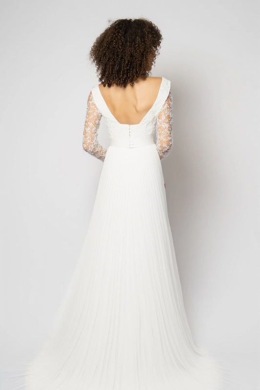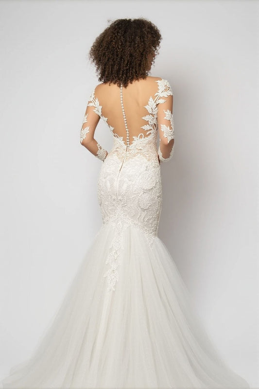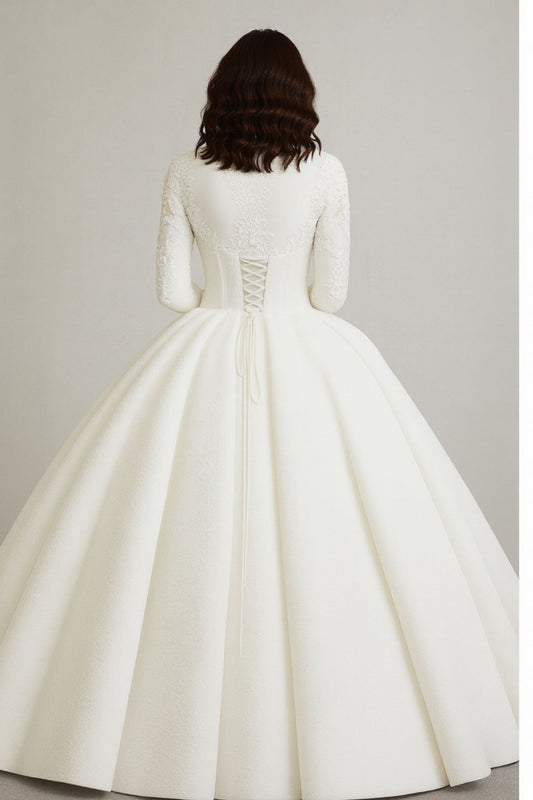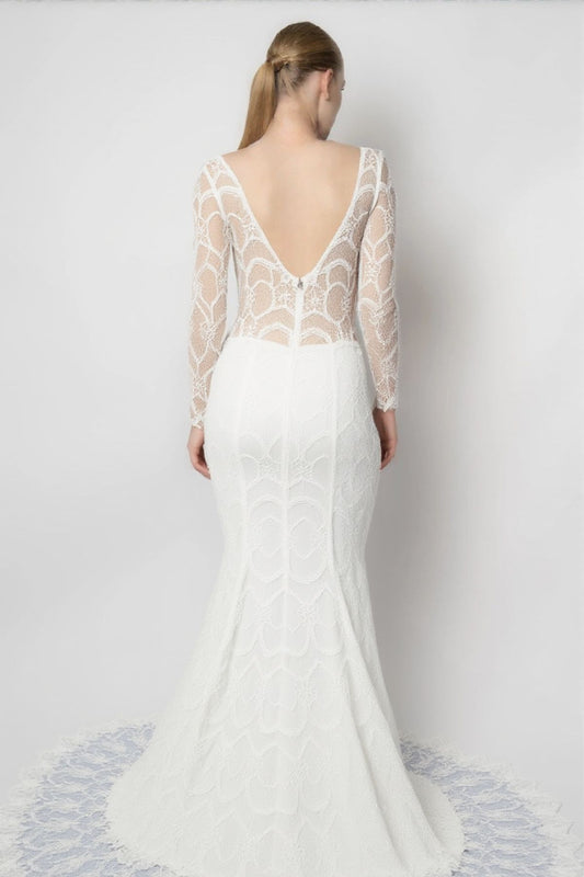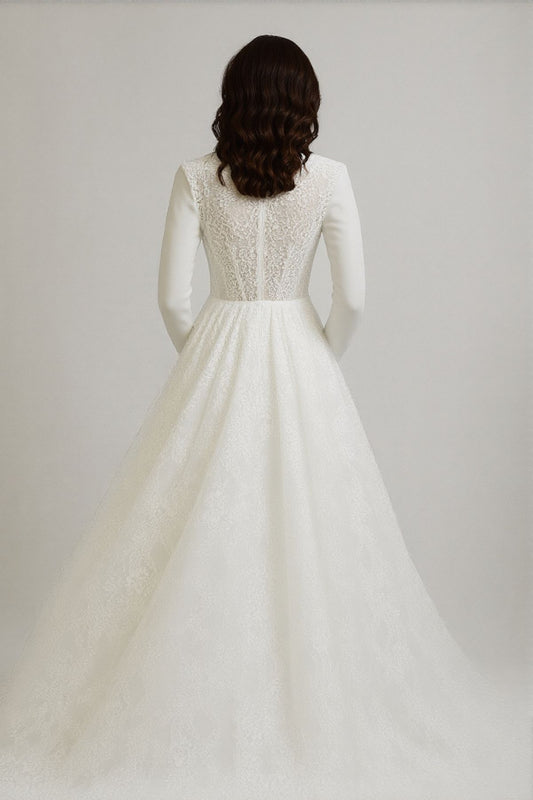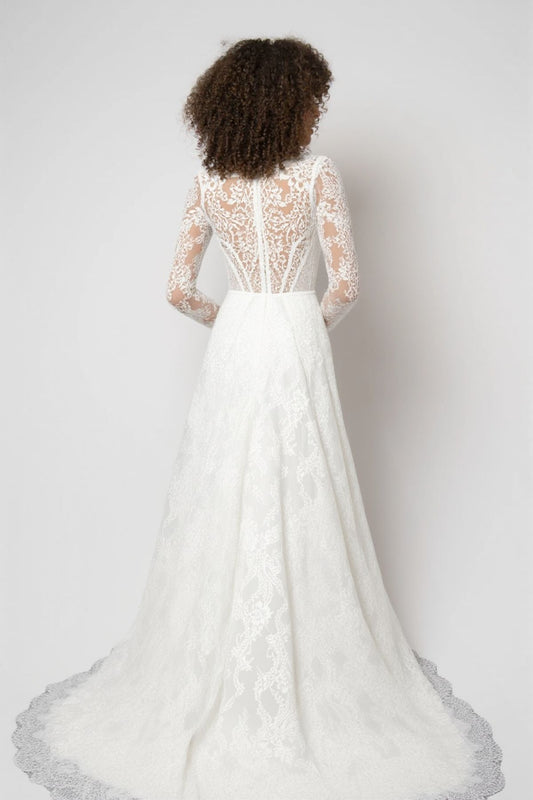 Linda Robe de mariée hiver , voilée simple en dentelle